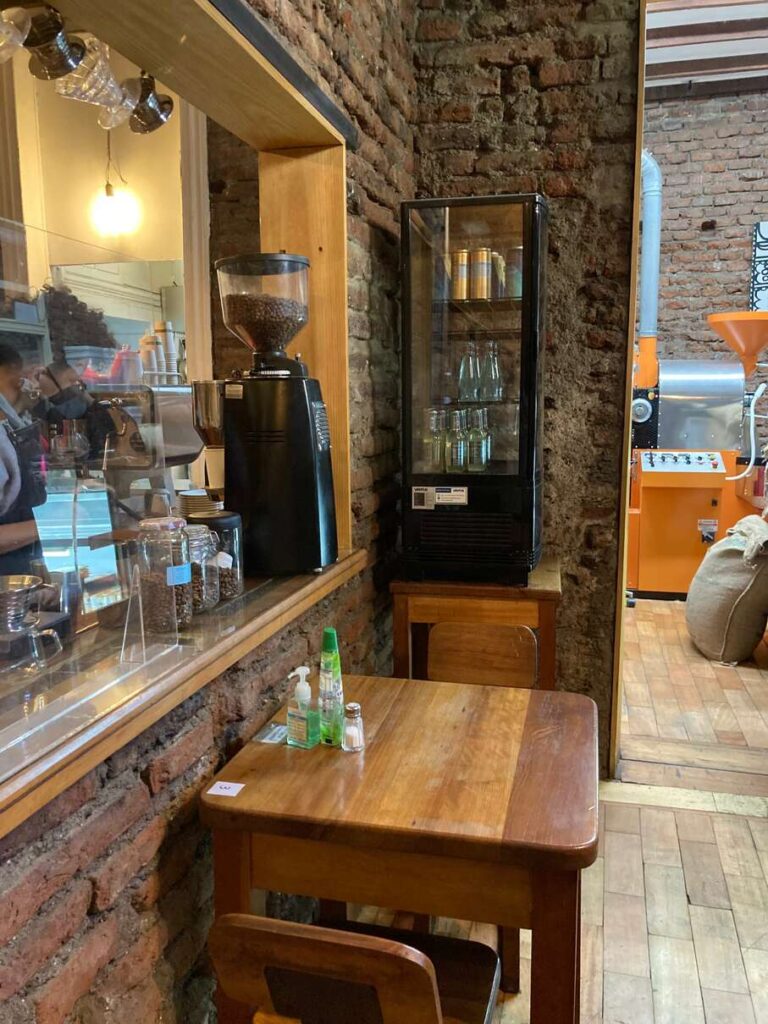 Como su nombre anuncia, el Original Green Roasters es un tostador que integra su servicio abierto al público. Un café único, ubicado en uno de los sectores más turísticos de la capital chilena, en el barrio que circunda Parque Bustamante. La casona de techo alto, acondicionada para atender al público en su primer y segundo piso, exhibe sus columnas de madera y deja el ladrillo visible para acoger a su variopinto público. Atmósfera familiar y turística al mismo tiempo, trabajan siempre con cafés de más de un origen, sirven exquisitos brunchs con un respeto visible por la cultura cafetera.